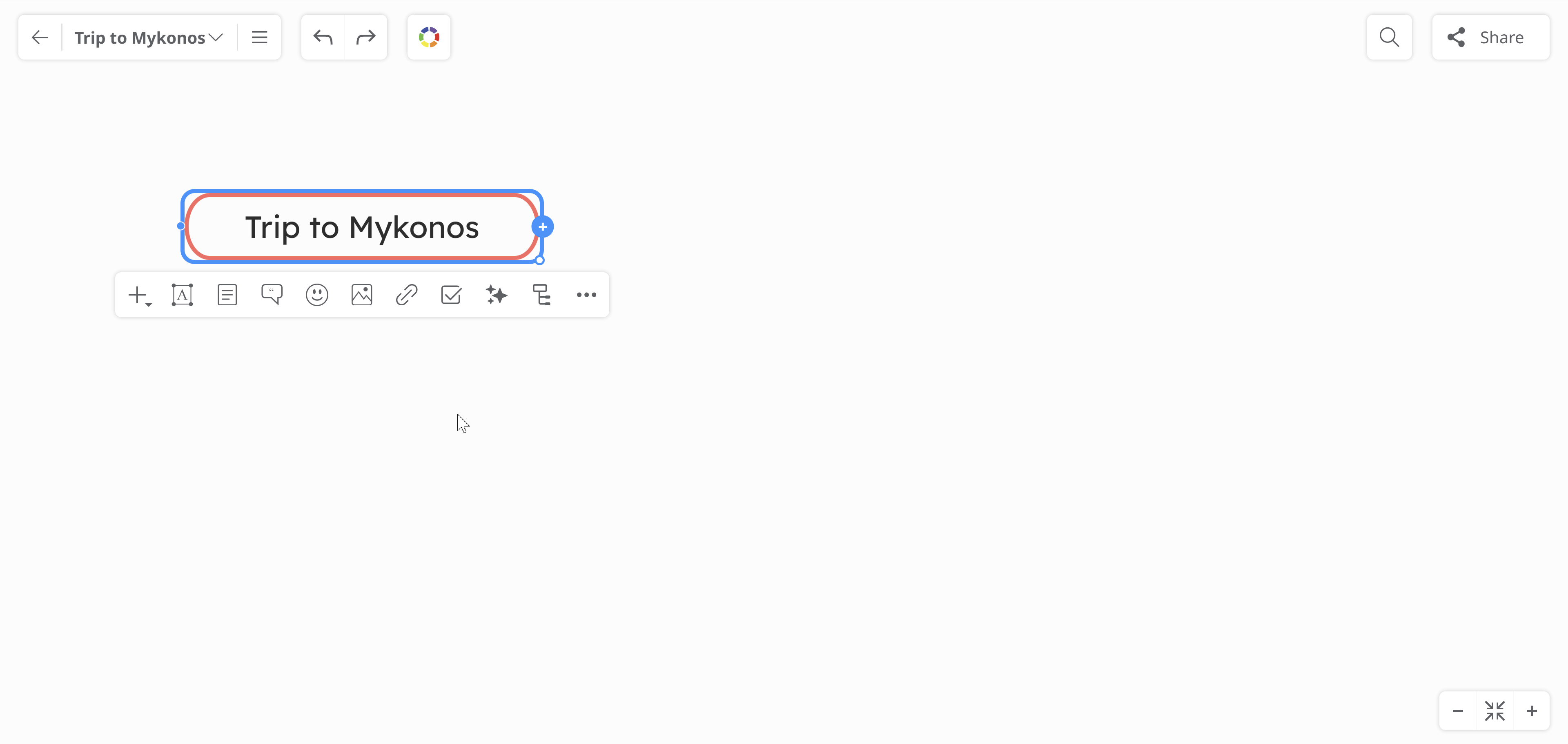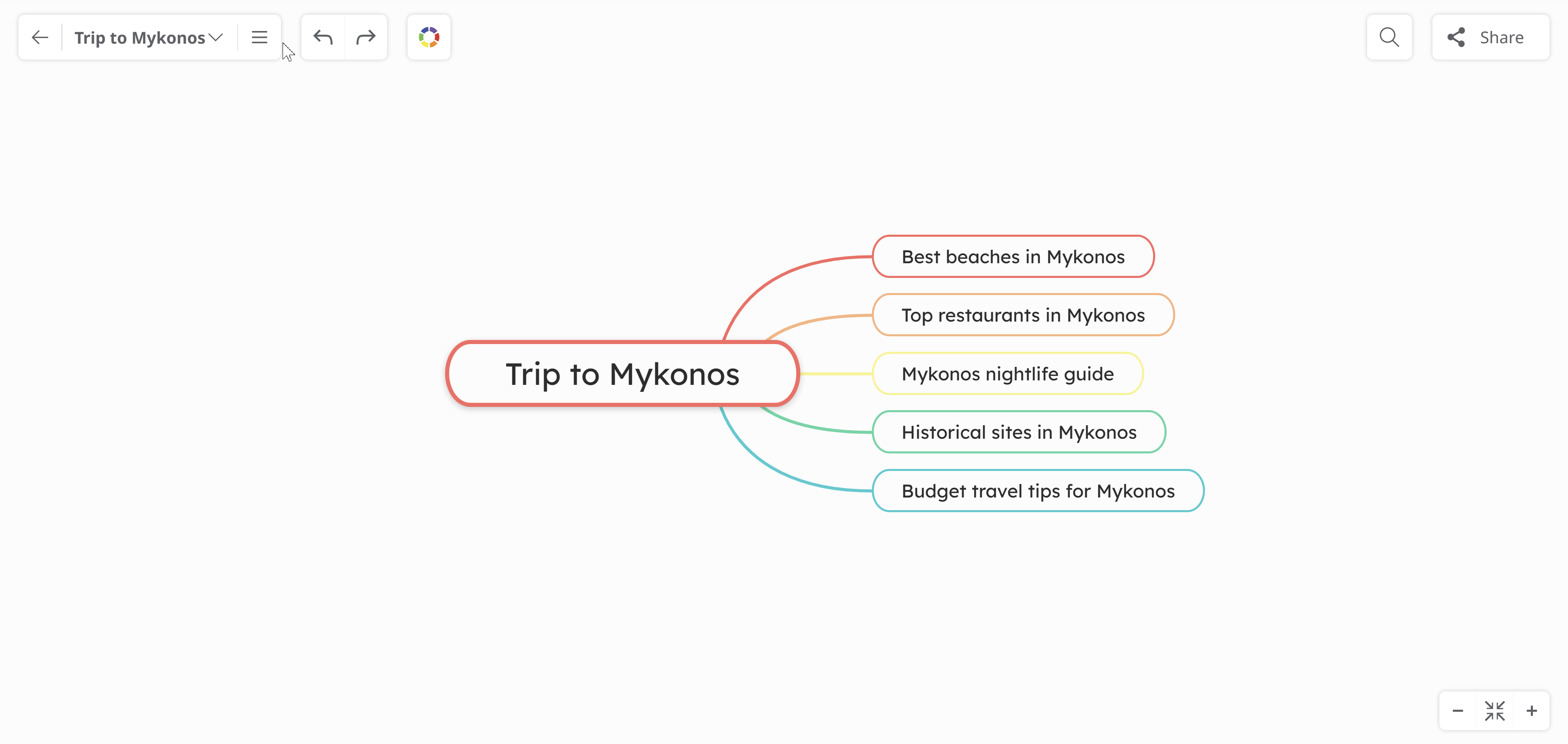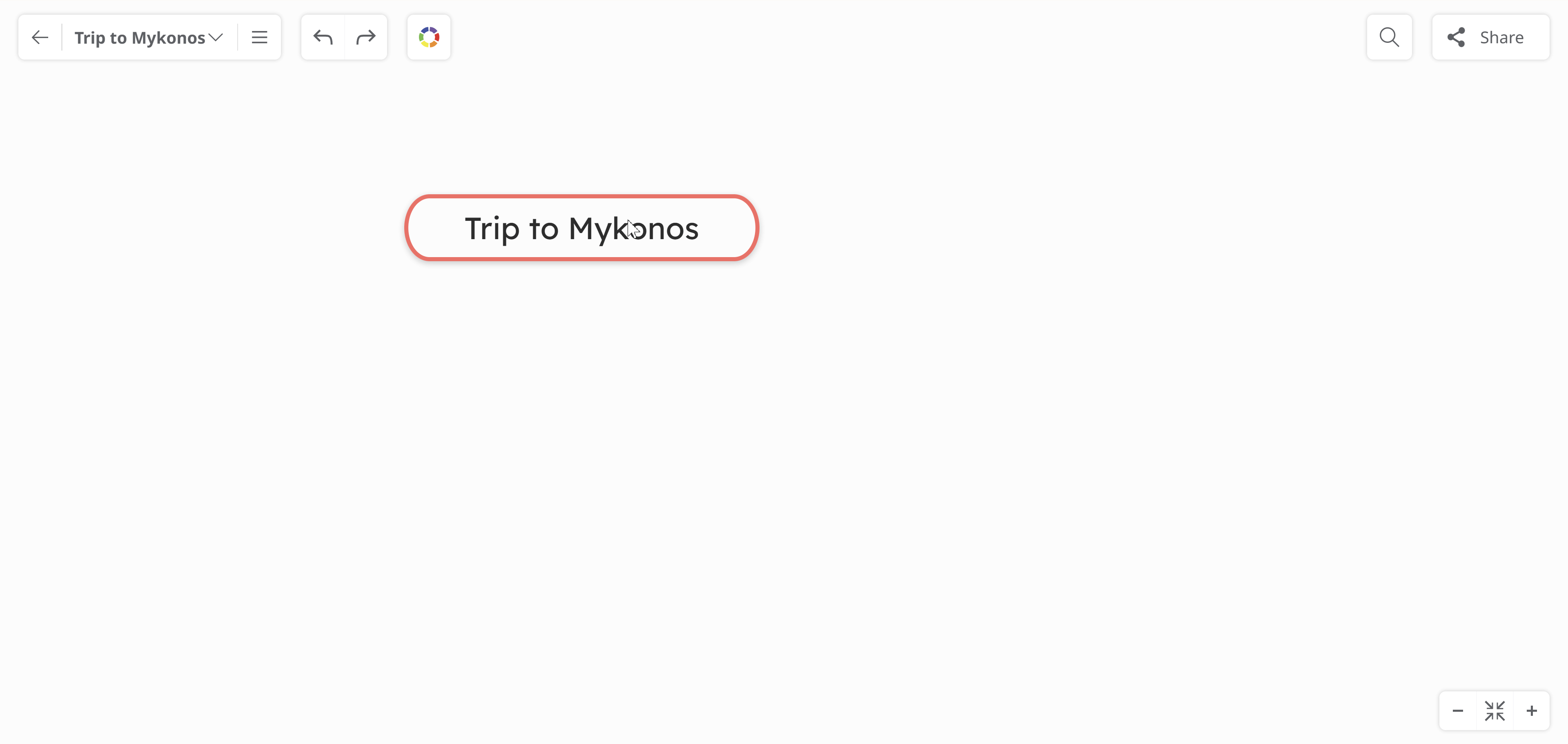 Puedes elegir el Idioma de IA en el que deseas expandir tus diagramas. Por ejemplo, podrías comenzar con un tema en inglés (como Viaje a Mykonos) y luego expandir el diagrama en cualquier otro idioma que elijas. Tienes la opción de dejar la configuración predeterminada: Detección automática que identifica automáticamente el idioma del tema y genera resultados en consecuencia.
