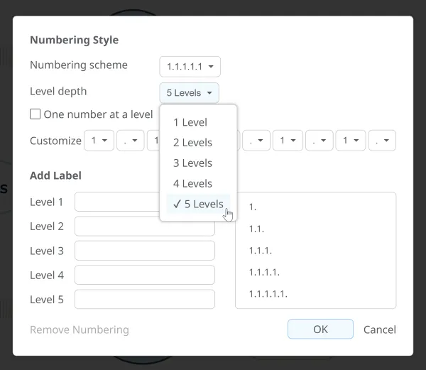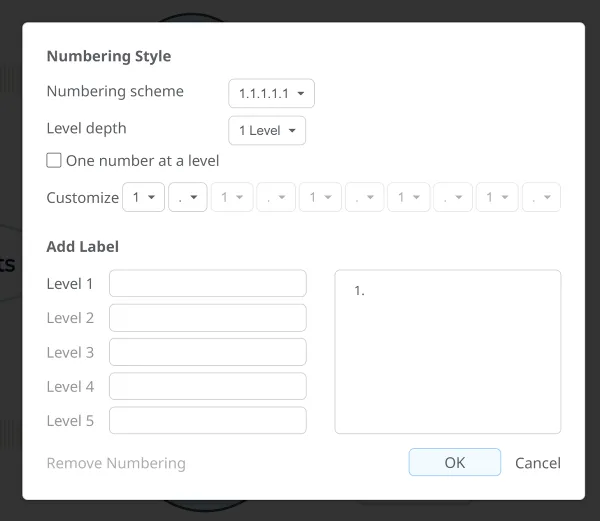 Después de habilitar la configuración de numeración deseada en el nodo raíz, los otros nodos se numerarán automáticamente (hasta 5 subtemas).