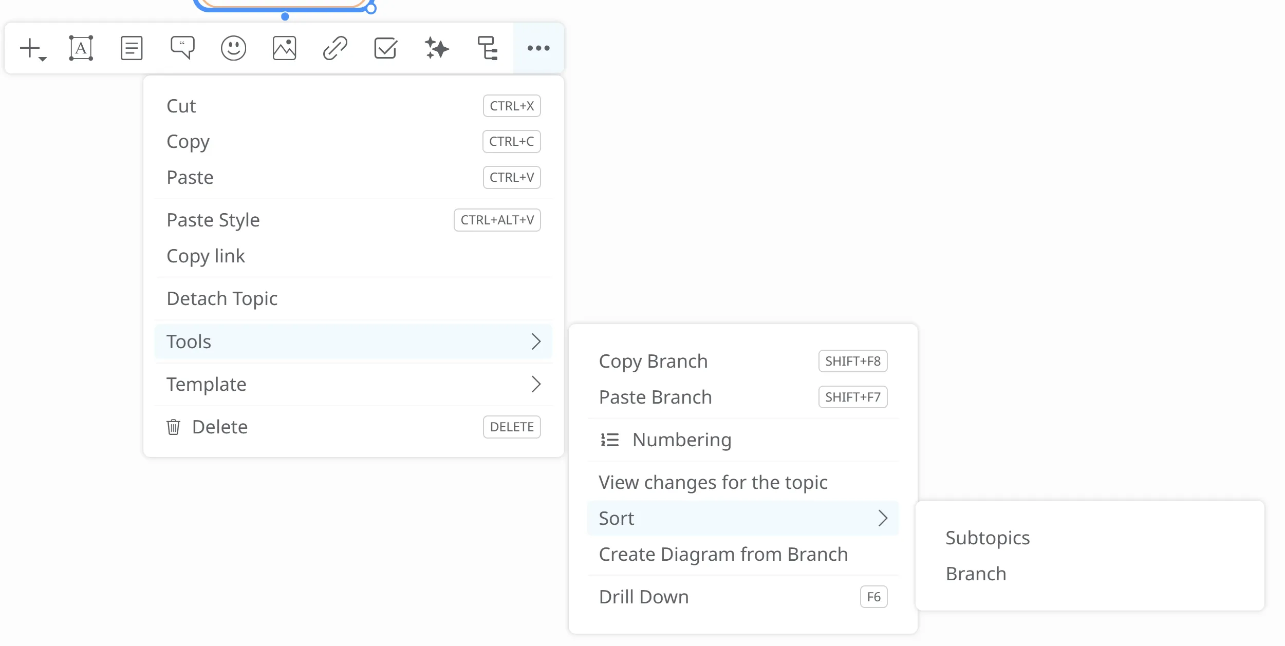 Sección titulada «Copiar-Pegar ramas»Estas opciones te permiten copiar y pegar ramas y temas con todos los enlaces, imágenes, notas y otros recursos.