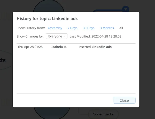 Sección titulada «Ver cambios en el tema»Si haces clic en Herramientas, luego en Ver cambios en el tema, verás los cambios que tú o tus colaboradores hicieron en ese tema. También puedes ver la fecha de los cambios. Además, puedes ver cambios realizados en diferentes periodos de tiempo como 1 día, 7 días, 30 días o 3 meses.