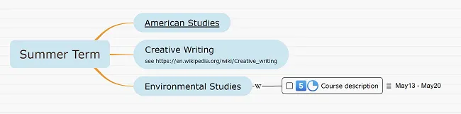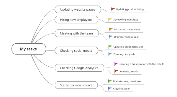 Consulta las imágenes a continuación para ver cómo aparecen las tareas creadas en Markdown una vez importadas a Mindomo.