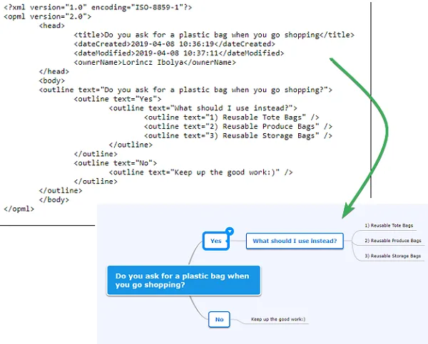 Sección titulada «Importar desde OPML»Mindomo construye la estructura del mapa basado en la jerarquía dentro del archivo OPML.