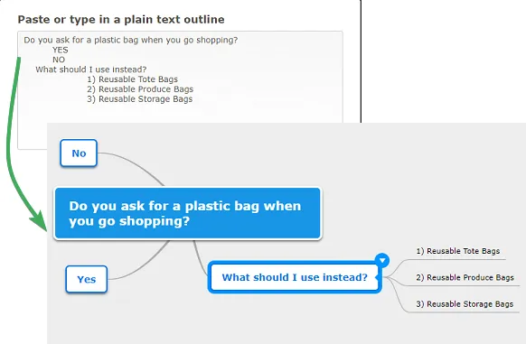 Sección titulada «Importar desde texto plano»Puedes importar un archivo .txt o pegar texto plano directamente y convertirlo en un mapa mental.