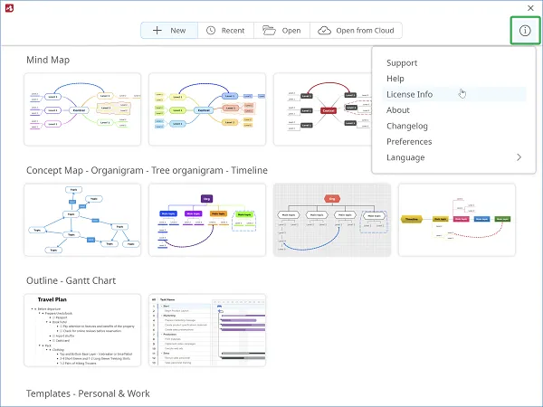 En tu aplicación de Escritorio, haz clic en el icono que se muestra a continuación, luego selecciona Información de Licencia: