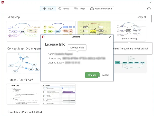 Desde aquí, puedes extender tu suscripción actual o cambiar a un plan diferente. Si cambias, puedes comprar la nueva licencia directamente (el cambio se aplicará automáticamente), o contactarnos en support@mindomo.com y lo actualizaremos por ti.