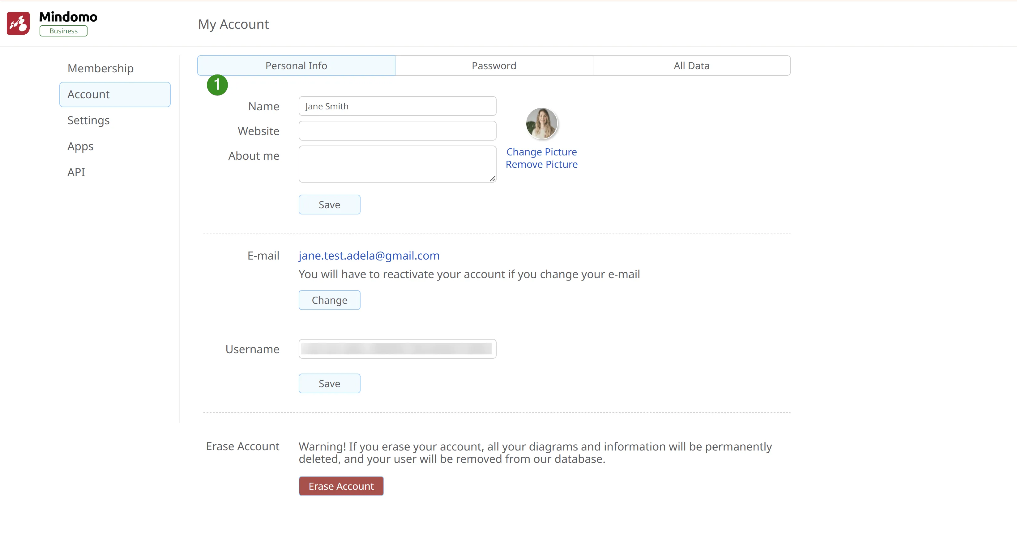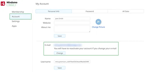 En esta sección, también puedes actualizar tu Nombre de Usuario, que puedes usar como credencial de inicio de sesión alternativa en lugar de tu dirección de correo electrónico.