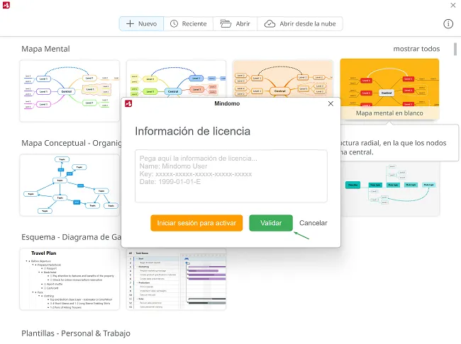 Pegue la información de la licencia y haga clic en “Validar”: