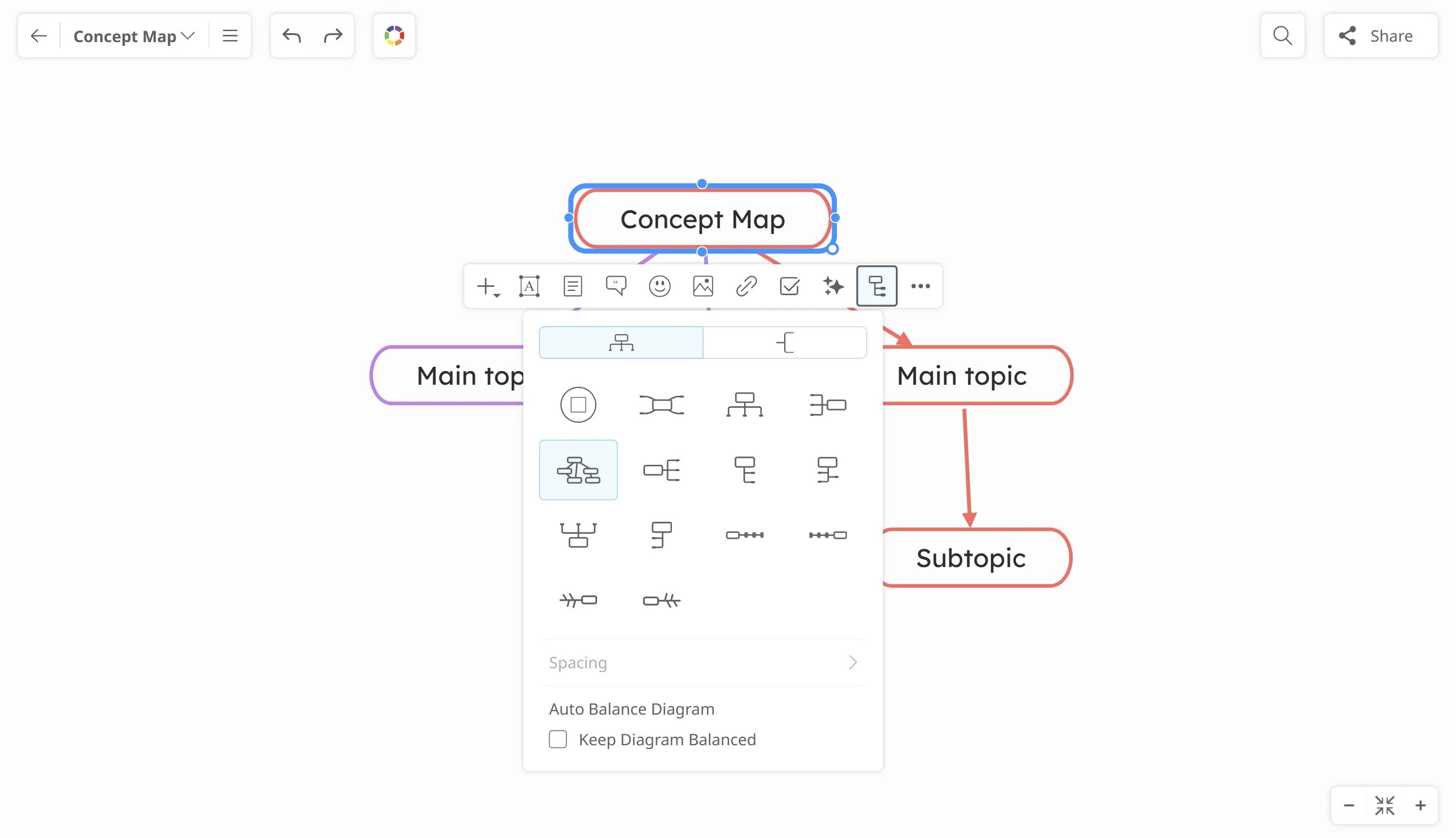 - Se selecciona el diseño del mapa conceptual - elegir cualquier otro diseño lo convertirá en un diagrama normal