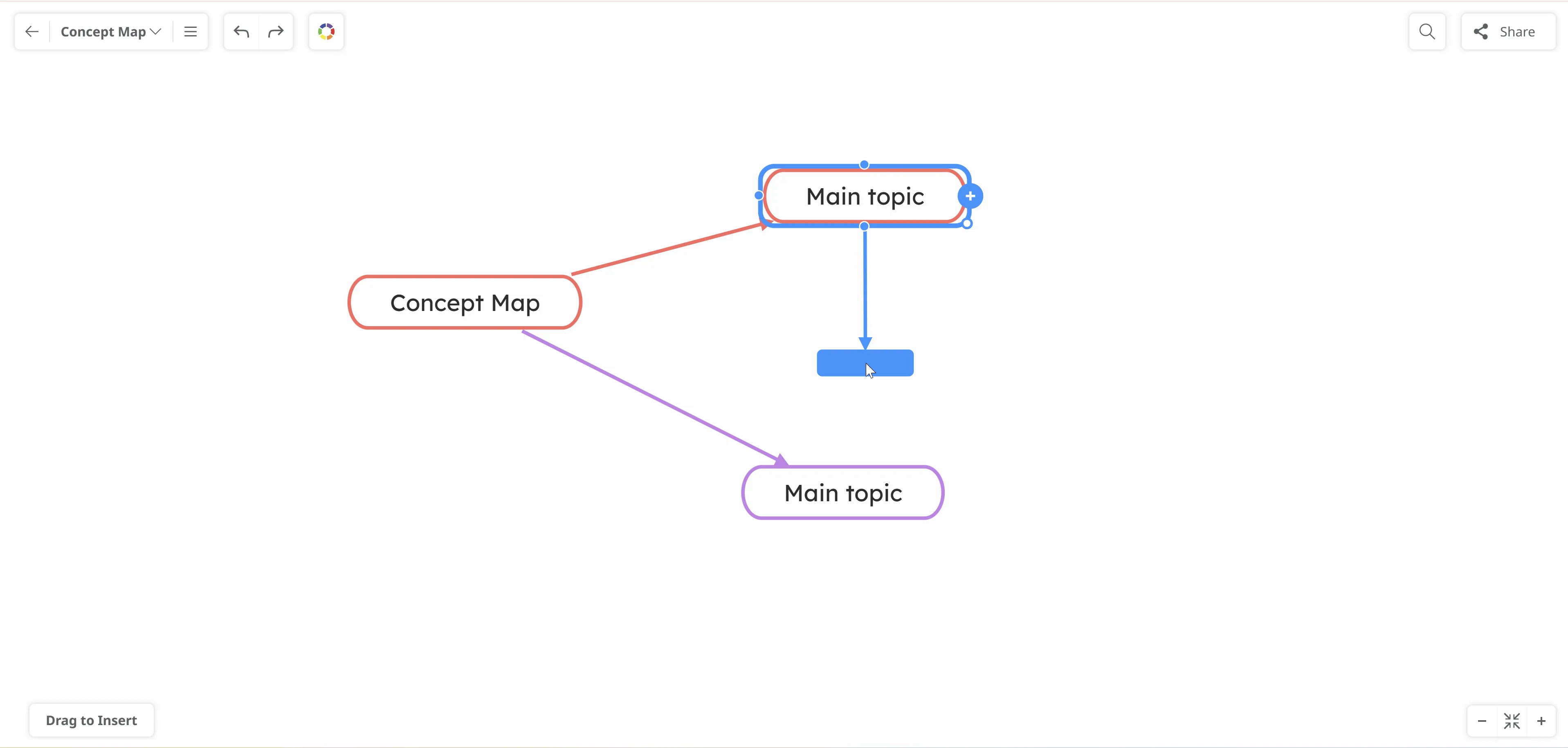 En contraste con la estructura rígida del mapa mental, el mapa conceptual mantiene un diseño flexible. Te permite mover tus temas a cualquier lugar en el lienzo del mapa arrastrándolos y organizar tu mapa como mejor te parezca.