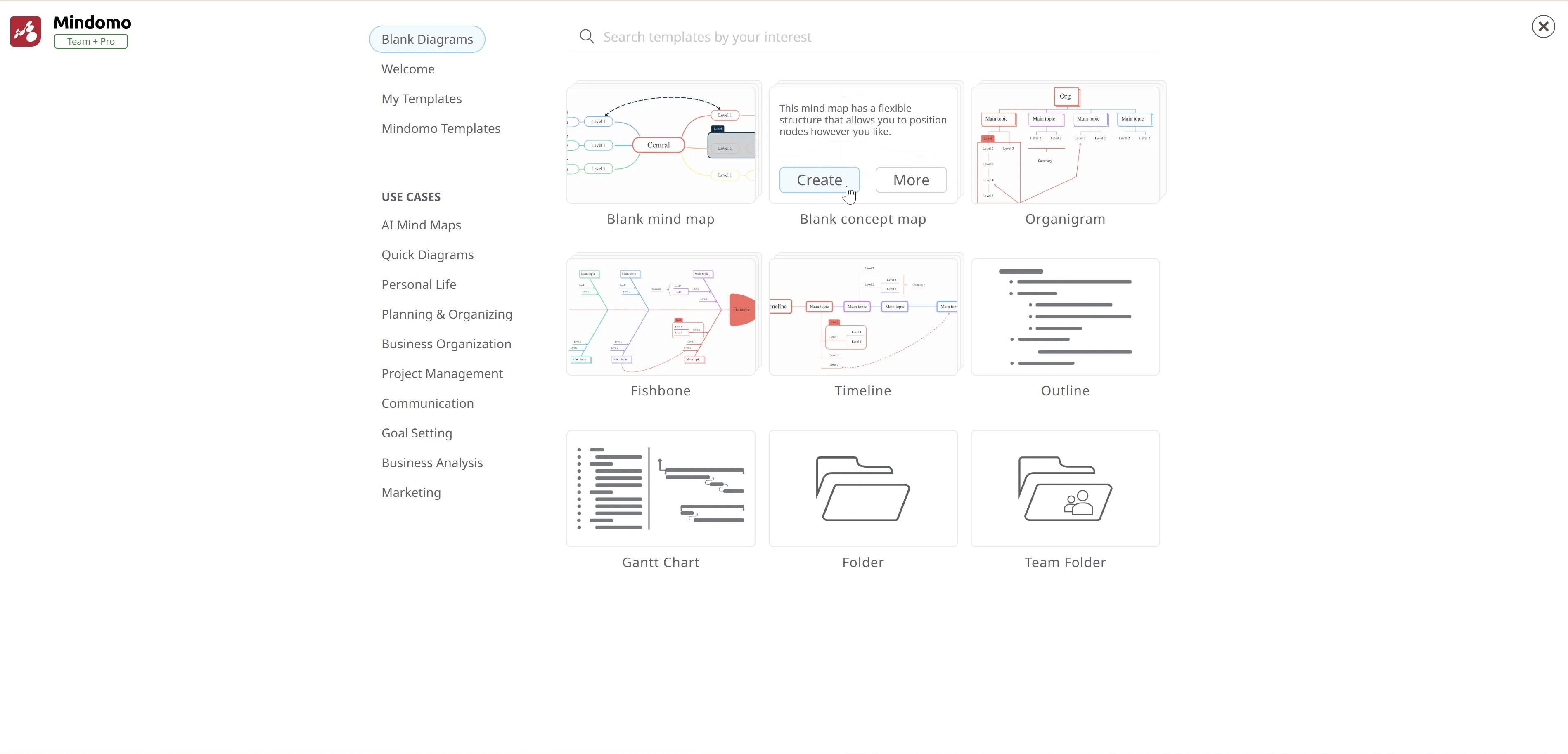 Luego ve a la sección de Mapa conceptual y haz clic en Crear.