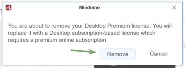 Después de hacer clic en Eliminar e introducir tus credenciales en línea, tu licencia se actualizará y permanecerá activa mientras tu suscripción en línea sea válida.