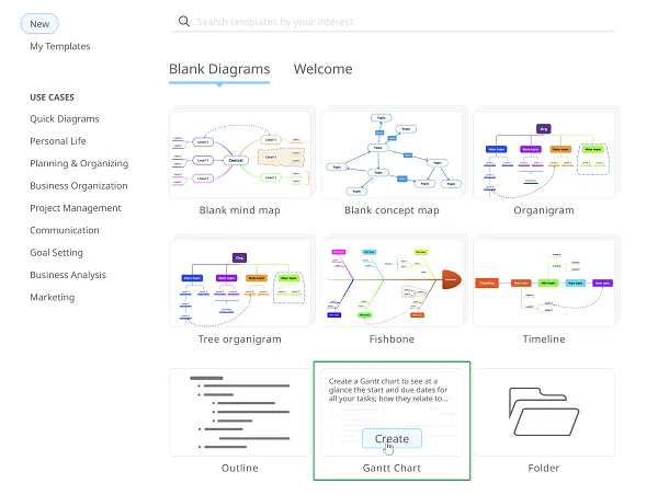 Luego ve a la sección de Diagrama de Gantt y haz clic en Crear.