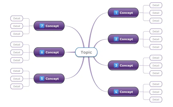 Pide a cada grupo de aprendizaje que añada al tema central 7 conceptos principales que hayan aprendido en el material proporcionado. Pide a los equipos que expliquen en detalle cada concepto principal añadiendo al menos 3 subtemas.