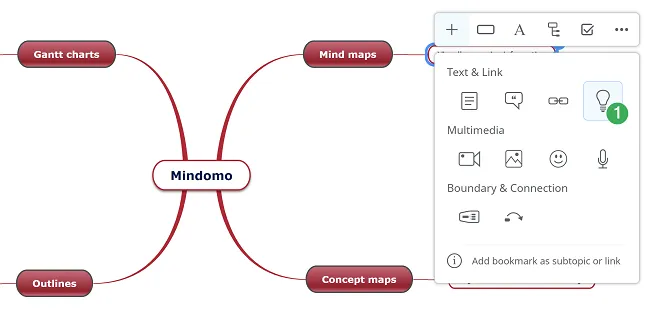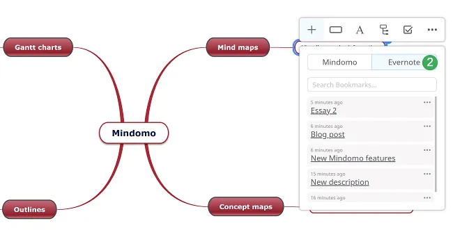 Sección titulada «Cómo ver las notas de Evernote en un mapa mental»- Selecciona la bombilla de Marcadores de Mindomo (1) desde el menú contextual.