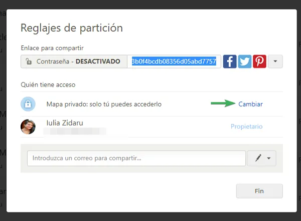 - Para poder compartir su mapa mental con Google Classroom, debe publicarlo antes. Si hace clic en “Sí”, se abrirá el panel Reglajes de partición.