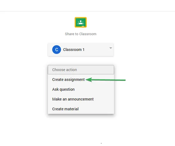 - Abrir el diálogo Compartir y hacer clic en el ícono Google Classroom.