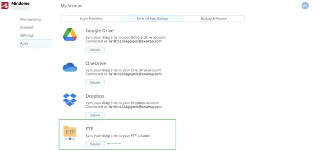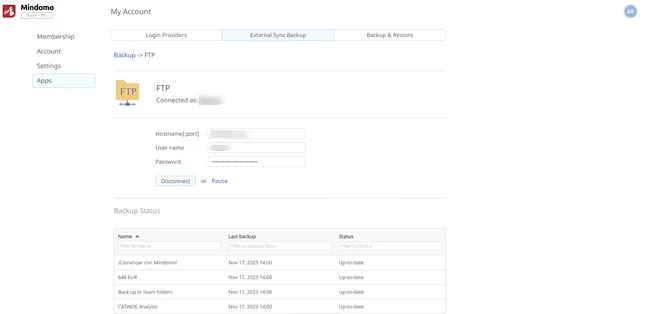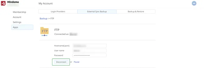 - Si ya no deseas respaldar tus mapas en FTP, haz clic en el botón Desconectar.