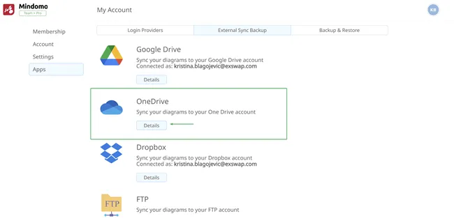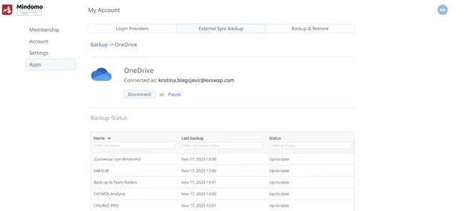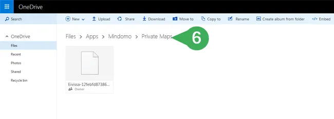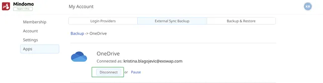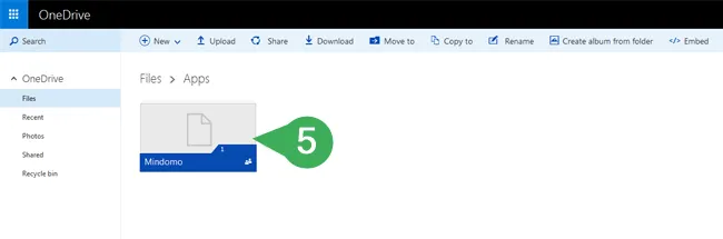 - Una vez que las dos cuentas estén conectadas, se creará una carpeta Mindomo en la sección Aplicaciones de tu cuenta de OneDrive. Tus mapas mentales de Mindomo se respaldarán en esta carpeta una vez por hora.