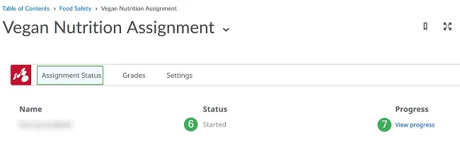 En la sección “Estado de la Asignación”, puedes rastrear quién comenzó la asignación (6) y su progreso (7).