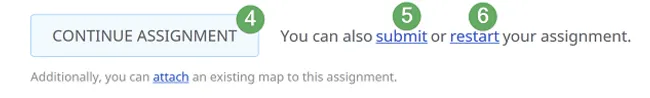 - Los estudiantes pueden reiniciar la asignación en cualquier momento, pero el trabajo previo se perderá con una notificación (6).