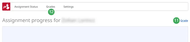 Puedes calificar a cada estudiante (11) y ver todas las calificaciones (12).