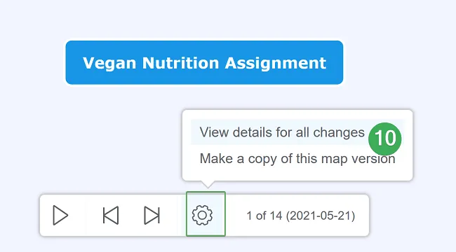 Haz clic en “Abrir Mapa Mental” para acceder al mapa directamente. Haz clic en el botón de Reproducir para ver el proceso de creación del mapa (8). Los botones de Rebobinar y Avanzar navegan al inicio y al final.