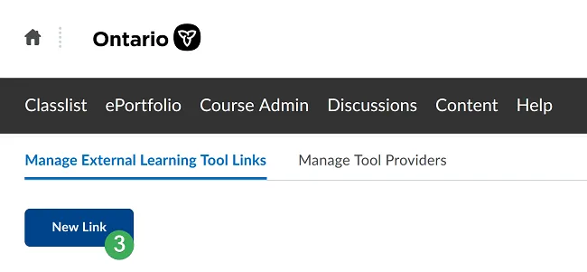 Paso 2. Elige la opción “Herramientas de Aprendizaje Externas” (2), luego selecciona ‘Nuevo Enlace’ (3).