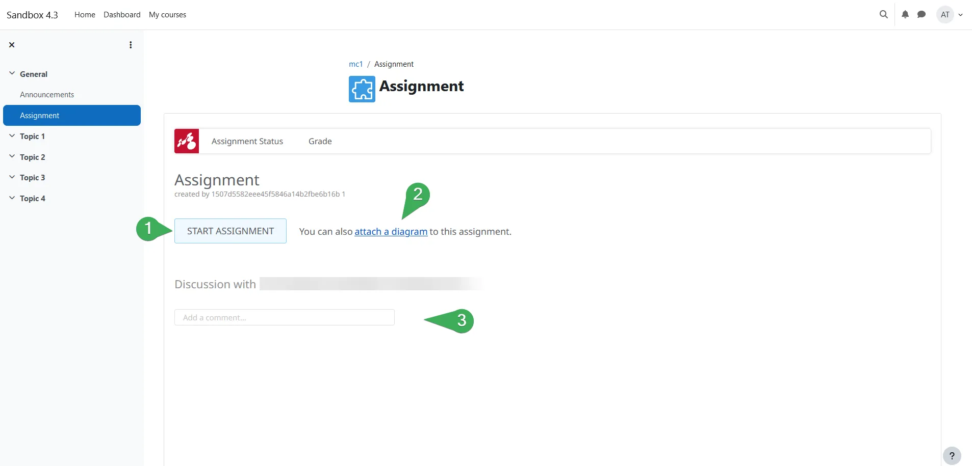 Paso 4. El enlace de Mindomo aparecerá en la sección del curso (1). Puedes editarlo cuando sea necesario (2/3).