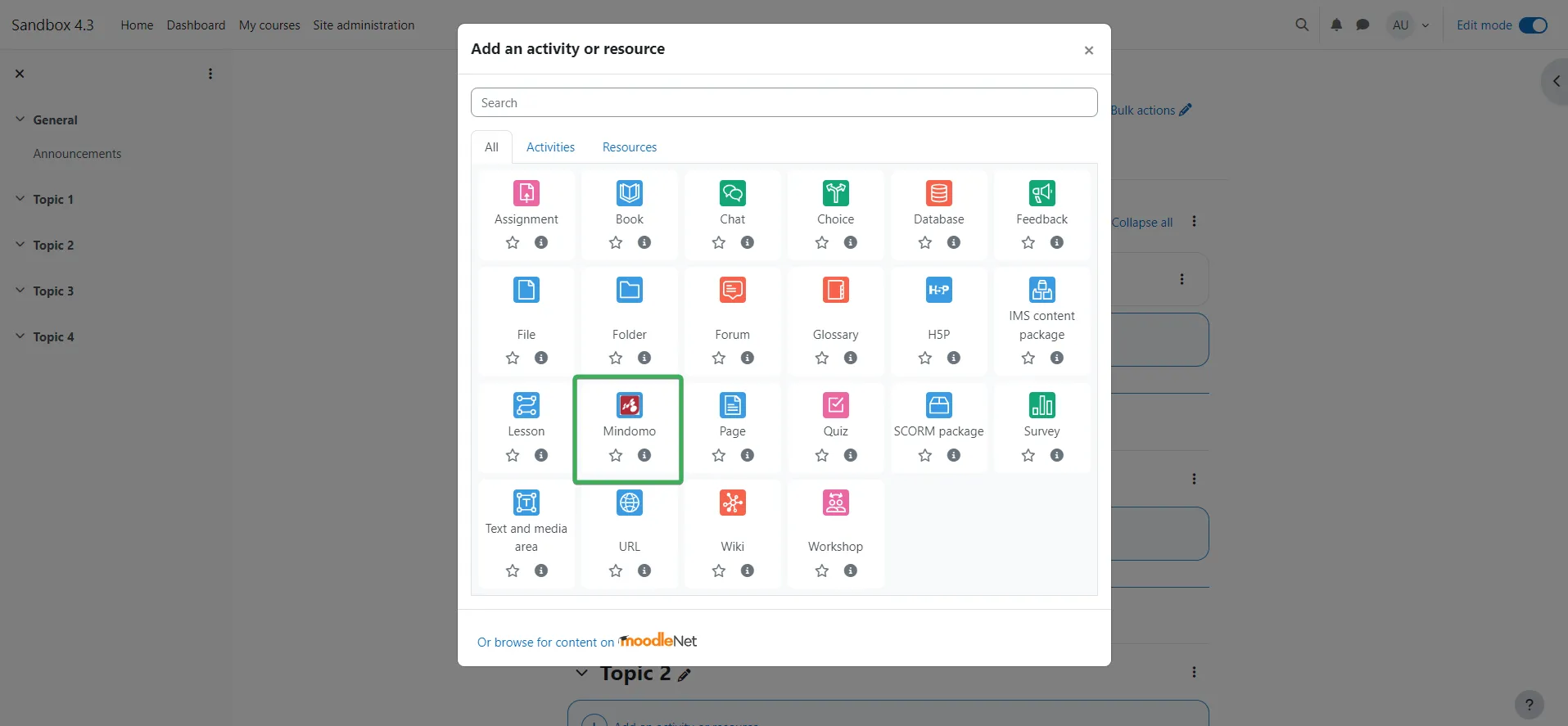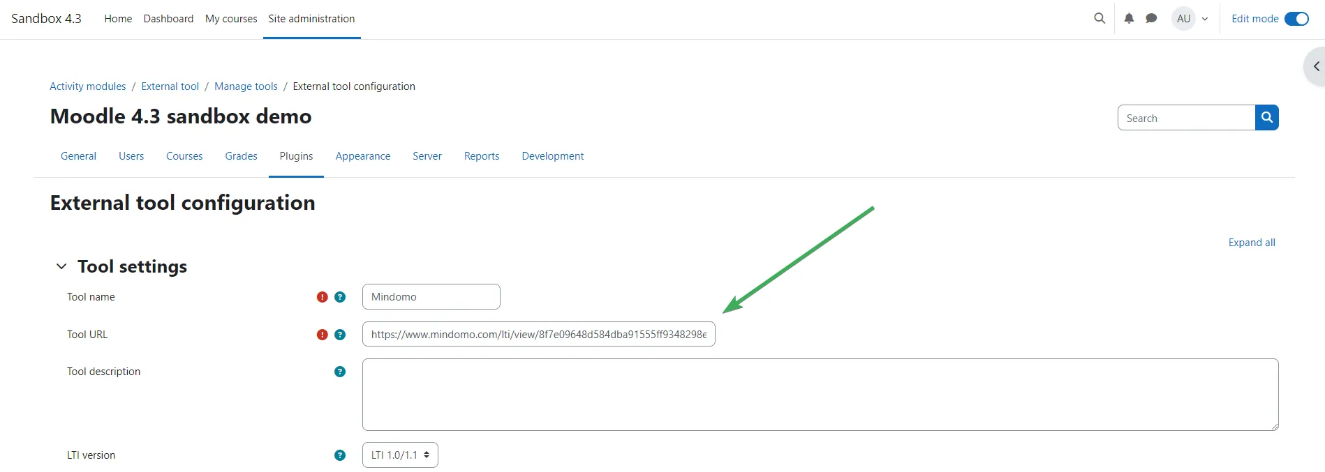 Añadir Mindomo como una herramienta externa