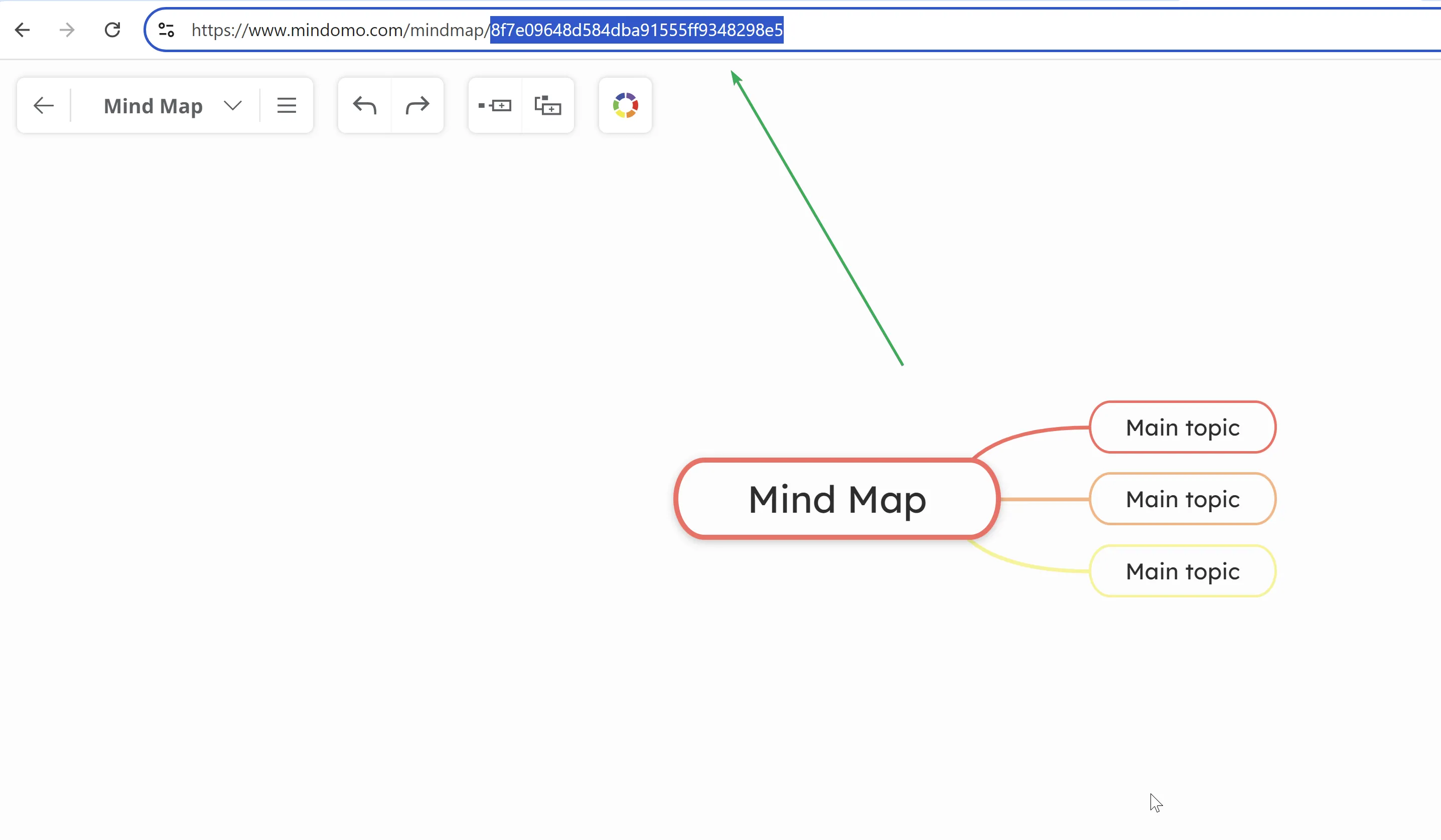 El ID del mapa es la secuencia final de letras y números en la URL del mapa mental, después del último /.