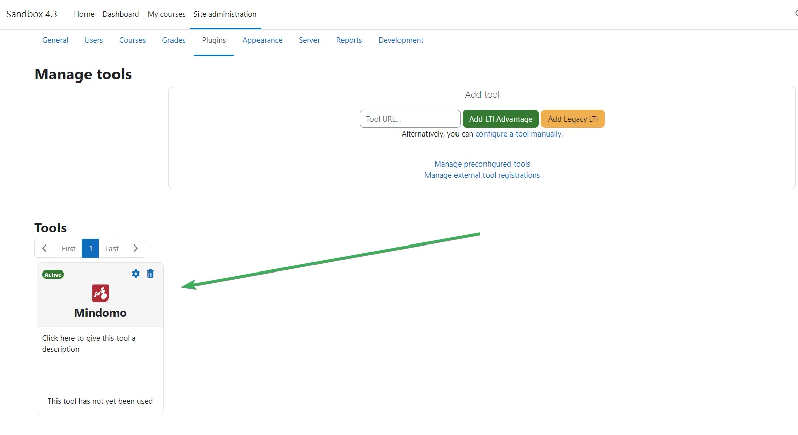 Paso 5. Haz clic en Guardar cambios. Mindomo ahora aparecerá como una herramienta activa.