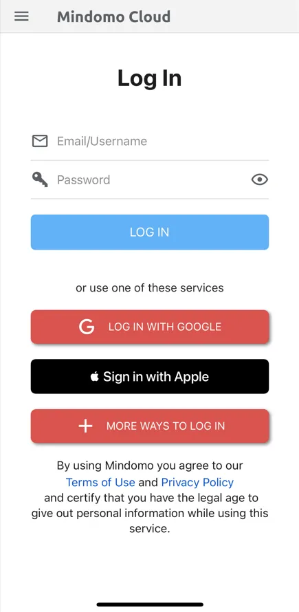 Sección titulada «Iniciar sesión usando otra cuenta»Usa este método solo si previamente iniciaste sesión desde la versión de navegador de Mindomo usando tu cuenta de Facebook, Yahoo, Office365, Windows Live, Clever, Skolon Yilan o SAML. Cuando iniciaste sesión en Mindomo desde un navegador usando una de estas cuentas, se creó una cuenta de Mindomo Cloud, y ahora puedes configurar una contraseña para iniciar sesión desde la aplicación móvil también.
