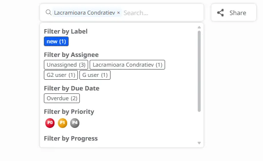 Sección titulada «Buscar y filtrar tareas asignadas a Usuarios Fantasma»Los usuarios fantasma te permiten monitorear el progreso de las tareas sin involucrar directamente a tus colegas. Puedes buscar y filtrar tareas según su usuario fantasma asignado. El nombre del usuario fantasma aparecerá en tu lista de Tareas y en Buscar.