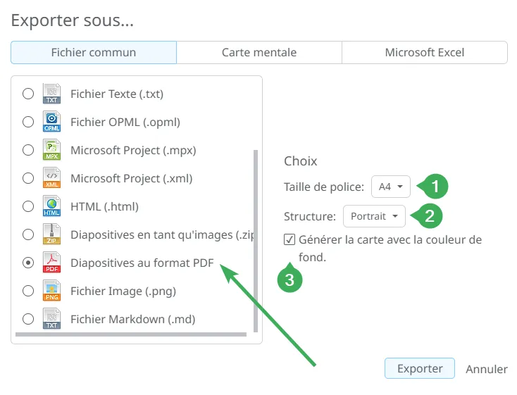 Exporter en format de carte mentale