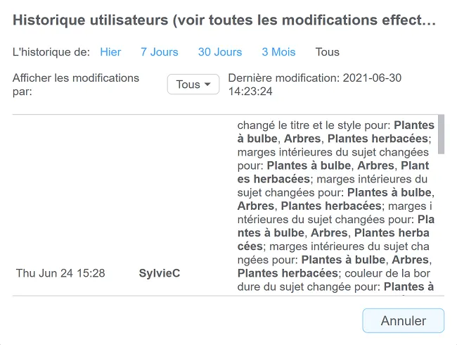Le mode Historique des changements est accessible quand vous cliquez sur le bouton Jouer.