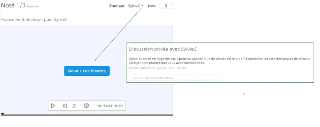 Si le devoir est collaboratif, dès que vous notez un étudiant, vous pouvez également lui fournir des commentaires privés.